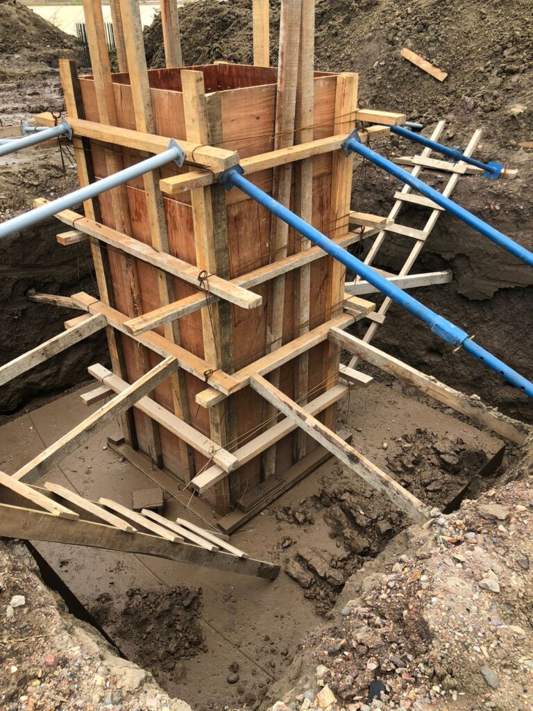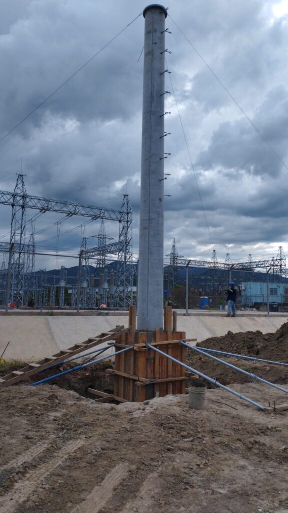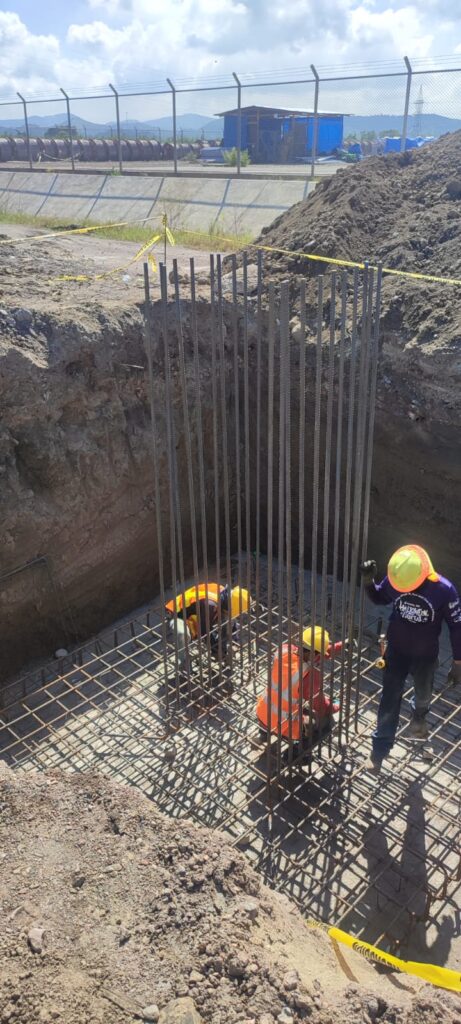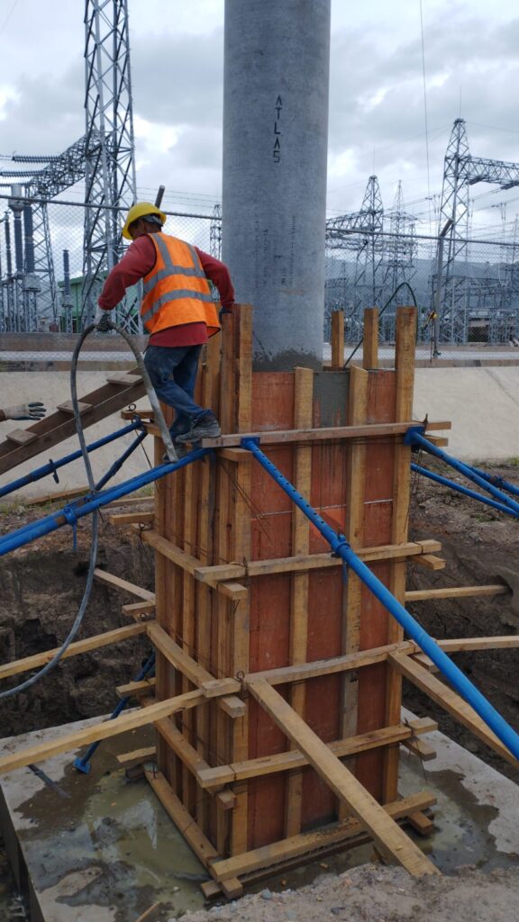 Construcción de cimentaciones para torres eléctricas, incluyendo excavaciones, armado de acero, encofrado y fundición, ejecutado con altos estándares de precisión estructural.